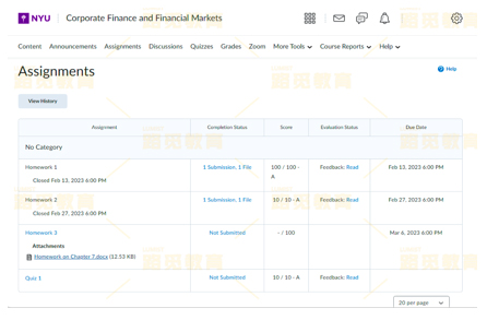 辅导成果:两门课程全部作业考试均为满分,稳分成功